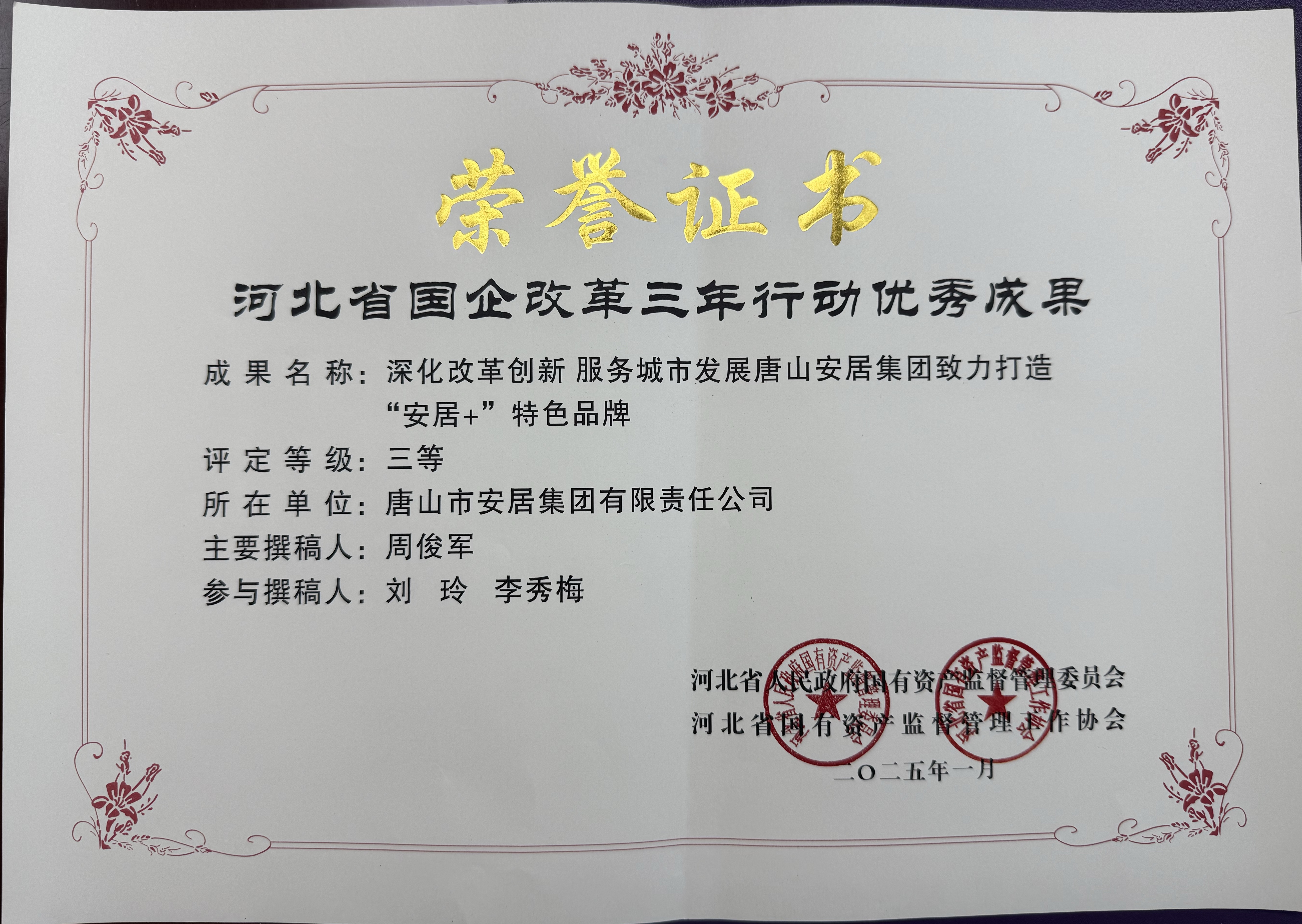 安居集团荣获河北省国企改革三年行动优秀成果奖。