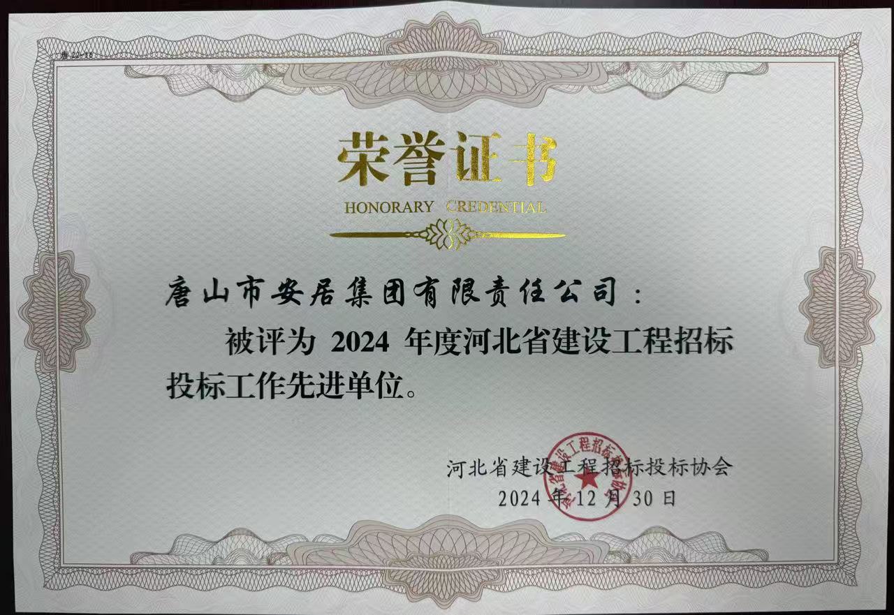 安居集团被省建设工程招标投标协会评为2024年度全省建设工程招投标工作先进单位。