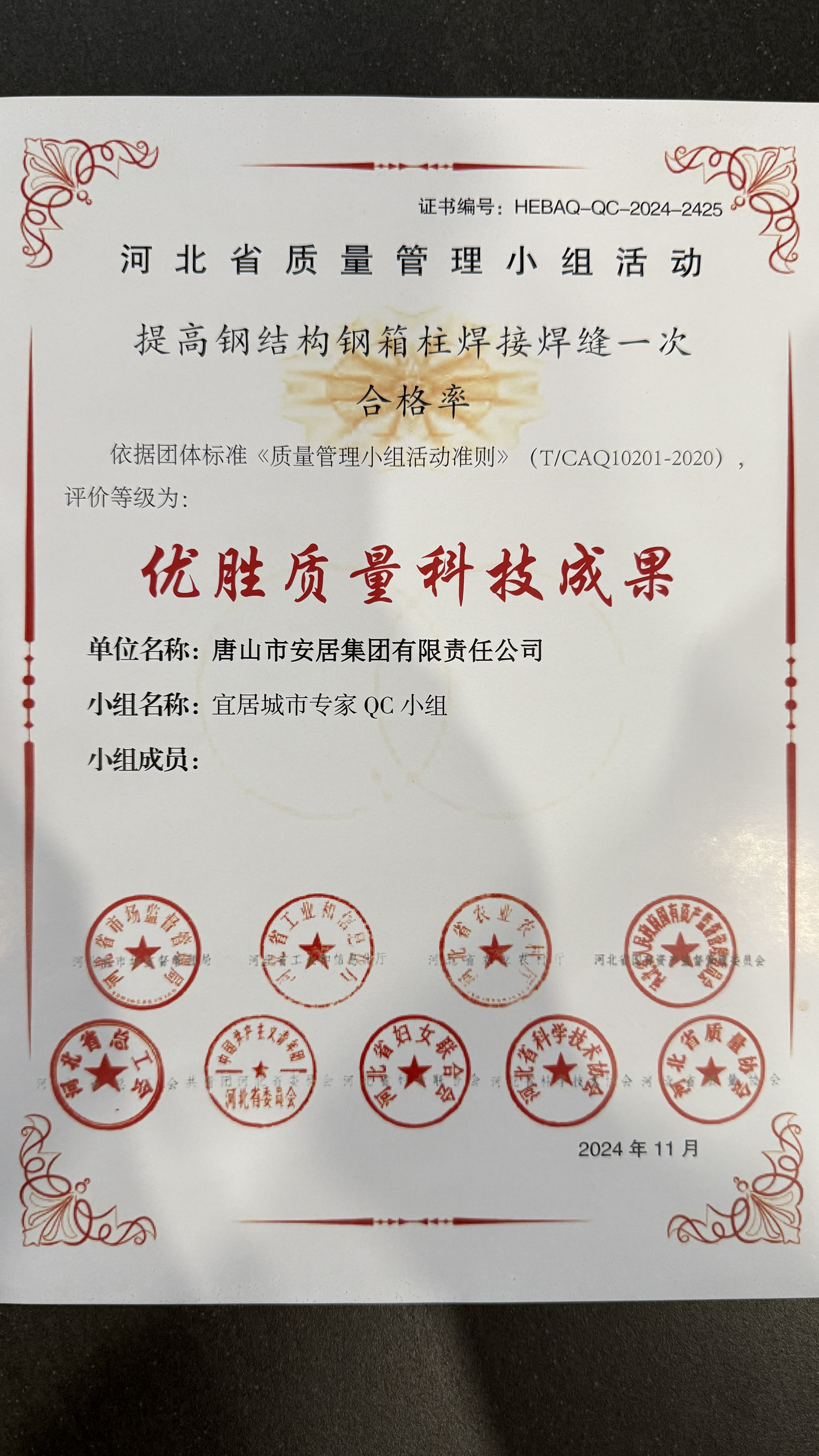 安居集团(宜居城市专家QC小组)荣获优胜质量科技成果奖。